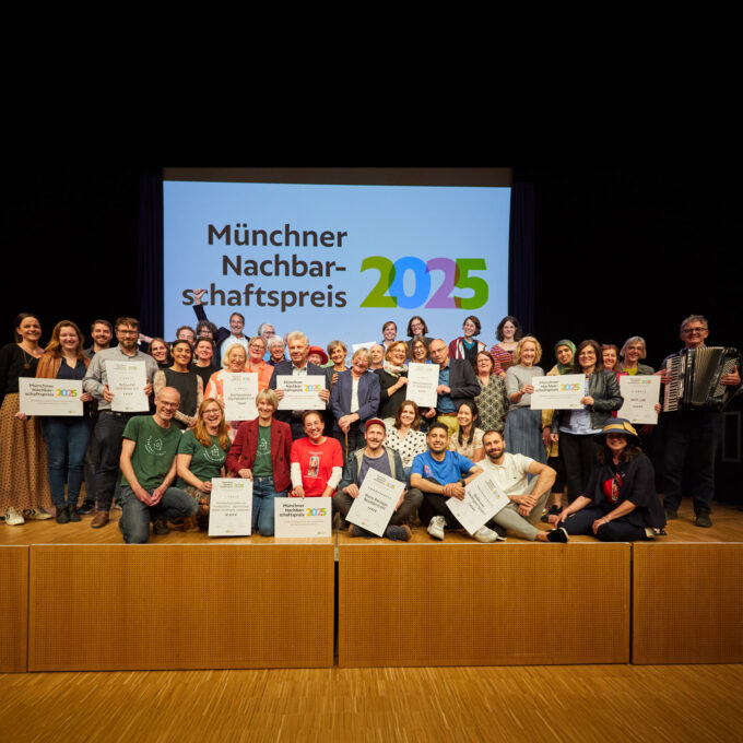 Am 14. Mai 2025 hat die Stiftung Daheim im Viertel zum zweiten Mal den Münchner Nachbarschaftspreis in Gesamthöhe von 50.000 Euro verliehen. Aus 22 nominierten, von insgesamt über 50 eingereichten Projekten wählte die Jury sechs Preisträger aus und vergab einen ersten Preis (10.000 €), zwei zweite Preise (je 7.500 €), drei dritte Preise (je 5.000 €) sowie zwei Sonderpreise (je 2.000 €). Zusätzlich wurden von Oberbürgermeister Dieter Reiter, dem Schirmherrn des Nachbarschaftspreises, per Losverfahren sechs weitere Projekte mit je 1.000 € ausgezeichnet. Dank des Einsatzes aller – engagierter Nachbarinnen und Nachbarn wie auch aller weiterer Akteurinnen und Akteure – war der Abend ein großer Erfolg. Alle Gäste waren begeistert und voll des Lobes!